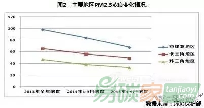 2016年,京津冀、長三角、珠三角等重點區域綠色發展水平有望進一步提升。根據環保部發布的《2015年1-9月重點區域各省(區、市)PM2.5濃度變化情況》,與2013年相比,