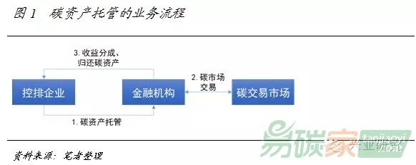 在減少自身碳負債方面,企業具有內部信息與相應的技術能力。但是在碳市場的背景下如何實現碳資產的保值增值,除極少數碳資產規模巨大、成立碳資產管理專門部門的“排放大戶”外,大部分控排企業均缺乏碳相關經驗與專業能力。碳資產托管業務即指企業通過將碳資產委托給金融機構或專業的碳資產管理機構(信托),并分享收益(包括獲得固定收益或者進行浮動的收益分成),而不需要直接參與碳市場交易的服務。通過將碳資產托管給專業機構,能夠在降低履約成本和風險、獲得碳資產投資收益,專注于自身的主營業務,提高經營效率。