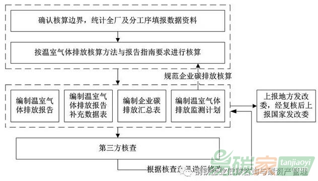 碳排放報告的編制、監測計劃的制定是一項涉及企業生產全過程的系統工程,企業須建立碳排放常態化管理體制,明確各部門職責和分工,建立相關數據計量-統計-核算-匯總-保存等完整的工作流程,與企業現有的生產管理及能源管理系統共享數據,實現企業碳排放數據的有效監控、調取及預測管理。