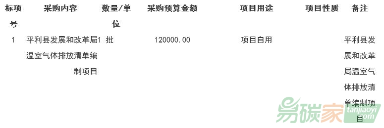 一、采購項目名稱:平利縣發展和改革局溫室氣體排放清單編制項目