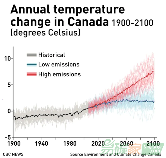 加拿大氣溫變化(來(lái)源:加拿大廣播公司)