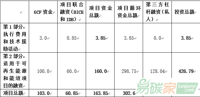該項目包括對生物質(zhì)、沼氣和能源效率等子項目的投資,總金額為4.3064億美元,資金來源如下表所示:表2. 項目資金來源(百萬美元)