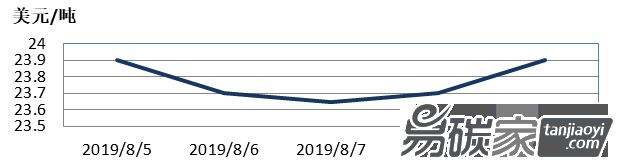 2019年08月05日至2019年08月09日,新西蘭碳市場價格在23.65-23.90美元/噸之間波動。