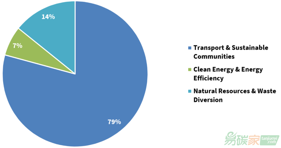 運輸和可持續社區項目??傮w而言,這些氣候投資可分為三類:(1)交通運輸和可持續社區;(2)清潔能源和能源效率:(3)自然資源和垃圾管理。加利福尼亞州通過拍賣收入為各種交通項目提供資金,從鐵路和道路運輸項目到低碳/零排放電動汽車的激勵措施項目和教育項目。此外,加州還實施了60,000個能效項目,這有助于加州實現其2030年目標,將