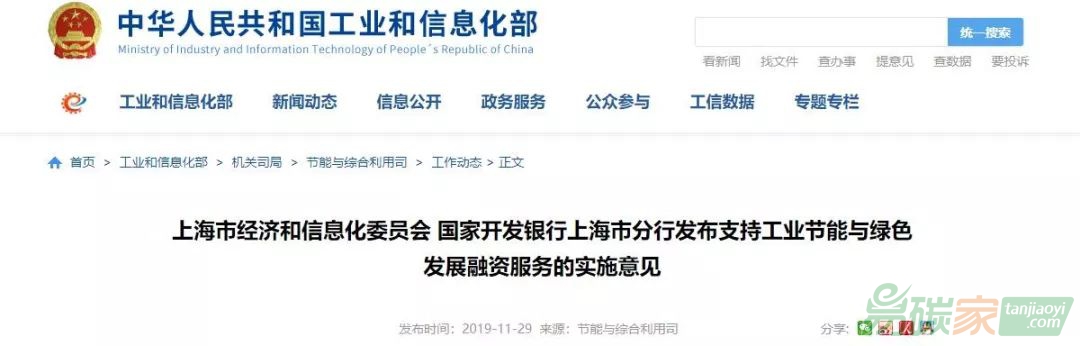節能和綠色發展的通知》(工信廳聯節〔2019〕16號),部署進一步完善綠色信貸合作機制,指導地方工業和信息化主管部門與當地開發銀行共同建立地方綠色信貸項目推薦機制,推動綠色信貸項目開發推薦常態化、制度化。各地區工業和信息化主管部門積極響應,與當地開發銀行密切合作,積極探索創新工作機制和模式,上海市經濟信息化委與國家開發銀行上海市分行發布了《關于本市支持工業節能與綠色發展融資服務的實施意見》,現予轉載。