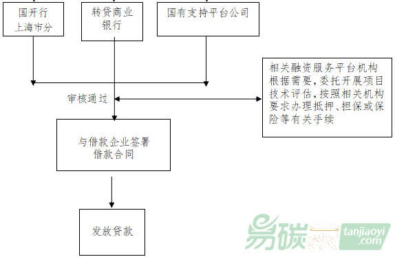 對有借款資格和綠色技術保障的融資項目,各相關金融服務機構或專業融資支持平臺負責對項目的借款金額及總體風控等進行專業評估和審查,符合條件的批準信貸。(國開行上海市分行、各相關商業銀行、國有支持平臺等)