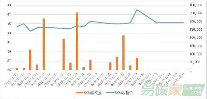 碳排放交易配額清繳截止期的結(jié)束,SHEA活躍度顯著下降,市場短期內(nèi)沒有剛性需求,觀望并等待明年相關(guān)