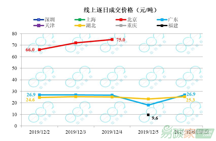 在配額成交均價方面,2019年12月2日至12月6日,在兩周連續發生交易的市場內,各市場碳價基本穩定,其中