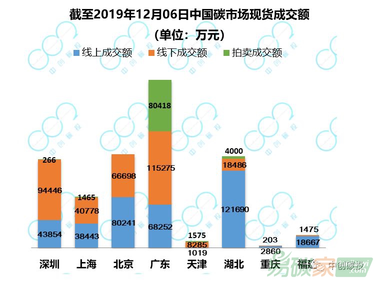 在成交方式方面,湖北碳市場同時存在線上交易與線下交易,其他發生交易的市場均為線上成交。
