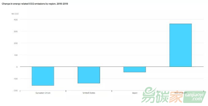 就煤炭而言,全球煤炭消費(fèi)二氧化碳排放量較2018年下降近2億噸,降幅為1.3%,抵消了石油和天然氣消費(fèi)排放量的增加。發(fā)達(dá)國(guó)家經(jīng)濟(jì)體的排放量減少了3.7億噸(3.2%),其中85%來(lái)自電力部門。