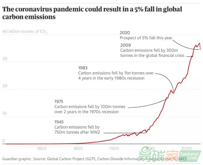 碳排放量可能下降創紀錄的25億噸,降幅為5%,碳排放可望降至10年來的最低水平。