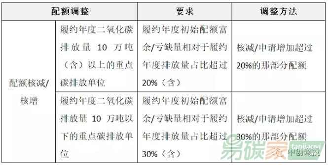 配額調整分為配額核增和配額核減兩種情況。可進行配額調整的適用范圍進一步擴大,一是對于履約年度已停產的重點碳排放單位或已停產的生產線,不再核發其配額。二是對于履約年度既有設施相對于歷史基準年發生重大變化的重點碳排放單位,應調整該既有設施在基準年排放量的基礎上核發配額。三是針對非技術原因導致的過量配額富缺特殊情況,采用配額調整機制。(注:此部分在北京市重點碳排放單位配額核定方法正文中。)