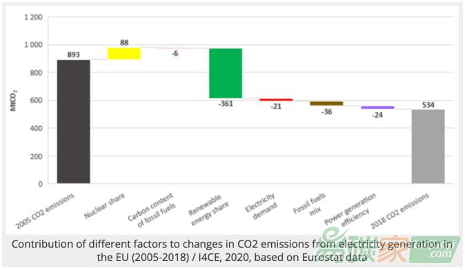 在上述減排量中,可再生能源貢獻最大,但與歐盟排放交易機制無直接關系。歐盟碳交易市場只對減排做出了微薄的貢獻,特別是鼓勵了發電的煤改氣。