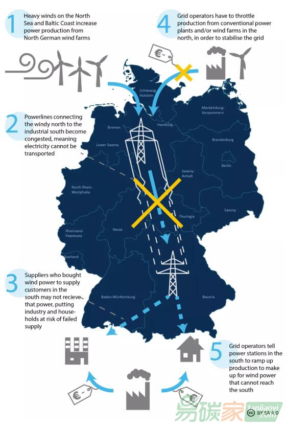 ——命令南德的傳統電站生產更多的電力,以滿足南德消費者的需求,這些消費者的供應商購買了無法通過的北德風電。