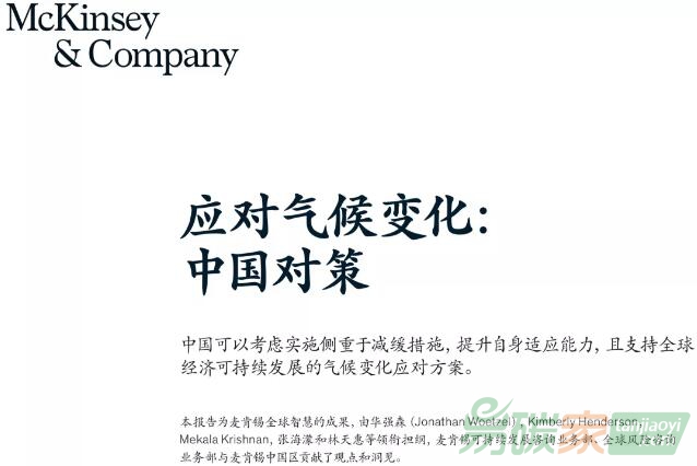 根據麥肯錫的最新報告《應對氣候變化:中國對策》,中國的溫室氣體排放量約占全球總量的20%,2016年凈排放量達160億噸二氧化碳當量。其中,二氧化