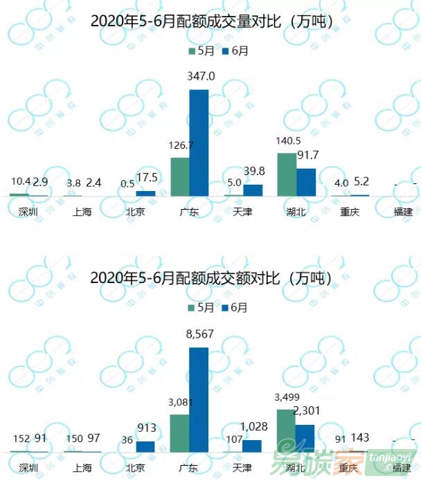 數據來源:深圳、上海、北京、廣州、天津、湖北交易所微信公眾號,以及重慶、海峽交易所網站(僅包含線上、線下配額交易數據)