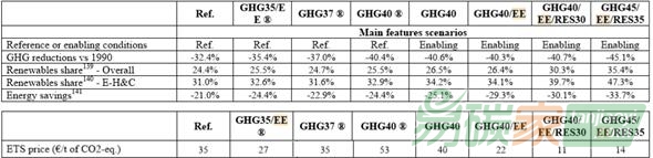 歐盟在出臺2020至2030年能源與氣候政策前,曾經對不同政策組合的情景進行了詳細評估,評估結果顯示并行機制(如節能政策、可再生能源政策)對碳市場配額價格將產生劇烈的影響。歐盟認為保障碳市場價格有穩定和清晰的信號是歐盟能源與氣候政策的首要目標。歐盟委托的團隊曾經開展政策影響分析(Impact Assessment),分析了成員國實施約束性的節能目標、約束性的可再生能源目標等與碳市場形成合力的政策組合,來實現到2030年相比1990年40%的絕對量減排目標。