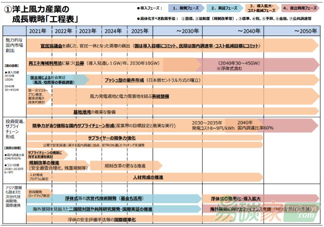 為了促進(jìn)綠色能源,日本計劃到2030年安裝高達(dá)10吉瓦的海上風(fēng)電裝機(jī)容量,到2040年達(dá)到30-45吉瓦,同時在2030-2035年前將成本削減到每千瓦時8-9日元(0.08美元至0.09美元)。預(yù)計2030年氨作為混合燃料在火力發(fā)電站的使用率達(dá)到20%;將氫的年消耗量增加到300萬噸,到2050年達(dá)到2000萬噸。力爭在發(fā)電和
