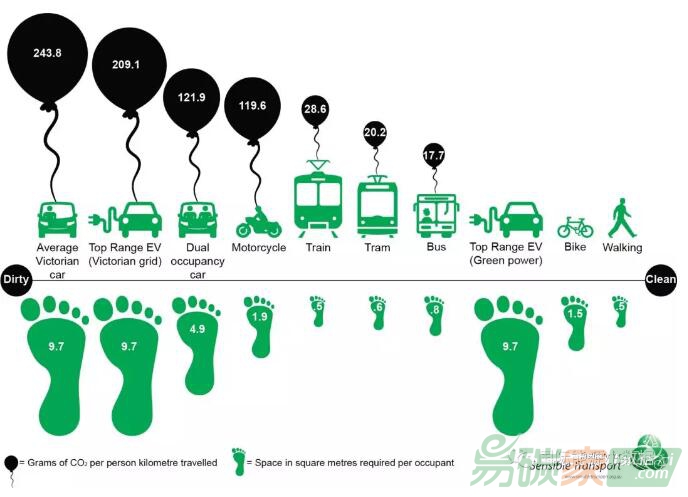 根據澳大利亞Institute for Sensible Transport的根據墨爾本市的實際數據測算研究,各種