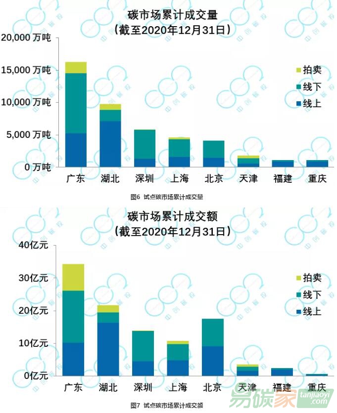 減排量6170萬噸,較去年大幅增長43%。其中上海、廣東市場CCER成交繼續保持活躍的態勢,分別成交了2100萬噸與1262萬噸;天津CCER市場2020年活躍度顯著增加,成交1910萬噸。