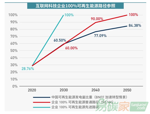 碳排放持續增長的互聯網科技行業也將感受到壓力。互聯網科技行業具有極強的低碳轉型潛力,應該充分發揮技術與產業模式的創新潛能,積極向100%可再生能源轉型,成為實現中國碳達峰、