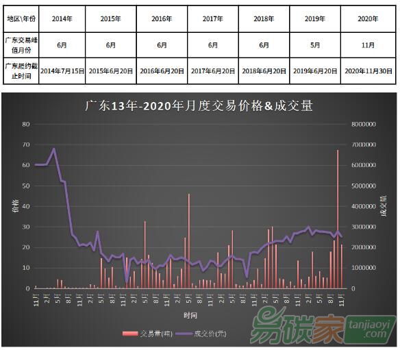廣東配額市場交易量峰期出現(xiàn)在履約截止日期的當月或前一月。