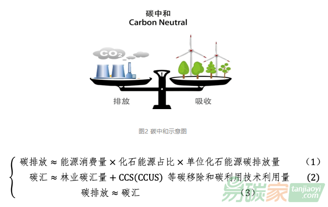 碳匯主要來自于林業碳匯和CCS(含CCUS)。碳中和即能源的碳排放降低至等于碳匯,亦可說碳匯足以抵消剩余碳排放,即公式(3),也就意味著圖2天平秤左右兩邊秤砣相當。當今世界和中國的現實是,公式(1)的排放值都遠遠大于公式(2)的碳匯值。要做到中和,主要的著力點應該在