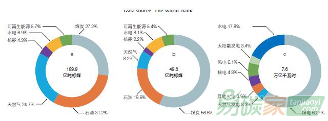 圖3 2020 年全球能源消費結構(a),以及中國的能源消費結構(b)和