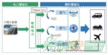燃料零碳化是以太陽能、風能等可再生能源為主要能量制取可再生燃料,包括氫、氨和合成燃料等。基于零碳