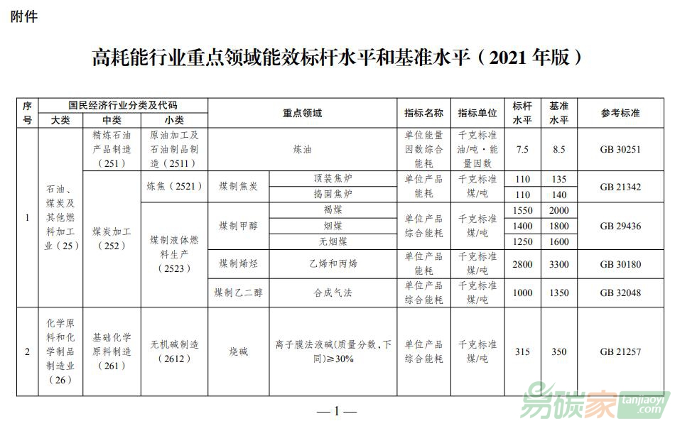 節能降碳的若干意見》,指導各地科學有序做好高耗能行業節能降碳技術改造,有效遏制“兩高”項目盲目發展,經商有關方面,現發布《高耗能行業重點領域能效標桿水平和基準水平(2021年版)》,并就有關事項通知如下。