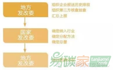在碳交易政策設計階段,國家發改委需要依靠地方提供的的重點企業歷史排放數據,以確定碳交易的覆蓋范圍以及配額分配方法。具體如圖所示: