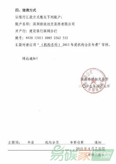 深圳排放權交易所關于收取2015年度機構會員年費的通知