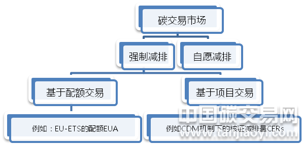 - 強制減排交易是指為受到排放總量控制國家或者企業提供碳交易平臺以滿足減排目標的交易。 其一是基于配額的交易,可交易由管理者制定、分配(或拍賣)的減排配額;其二是基于項目的交易,買主向可證實減低溫室氣體排放的項目購買減排額。