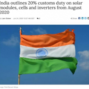 • 【動向】刺激“印度制造”,印度從8月起對光伏產品進口征收20%關稅