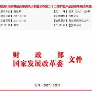 • 財政部 國家發展改革委關于調整公布第二十二期節能產品政府采購清單的通知【財庫〔2017〕129號】