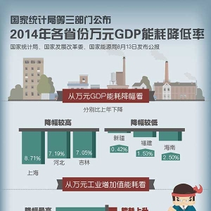 圖表:國家統計局等三部門公布去年各省份萬元GDP能耗降低率 新華社發 大巢制圖國家統計局、國家發展改革委、國家能源局8月13日發布公報,公布了2014年各省區市萬元地區生產總值(GDP)能耗降低率等指標。從萬元GDP能耗 ...