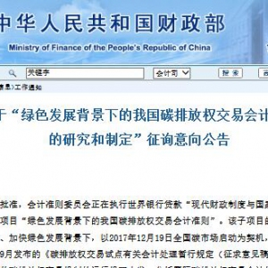 • 關于“綠色發展背景下的我國碳排放權交易會計準則的研究和制定”征詢意向公告
