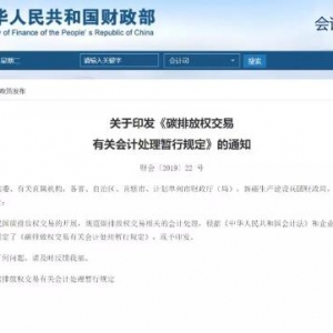• 財政部關于印發《碳排放權交易有關會計處理暫行規定》的通知【財會[2019]22號】